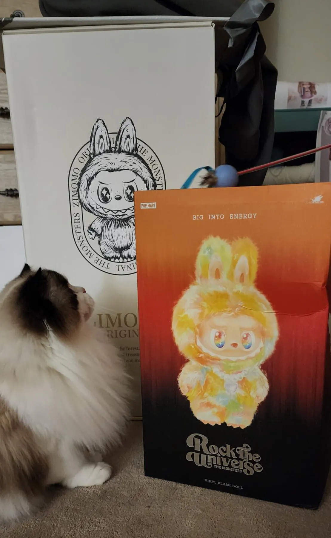 Liam Thompson One of my favorite labubu! It's really big, with a vinyl face and feet and a soft body that lets it stand. The colors are bright, it arrived in perfect condition, and it looks so cute on my desk. I smile every time I see it!